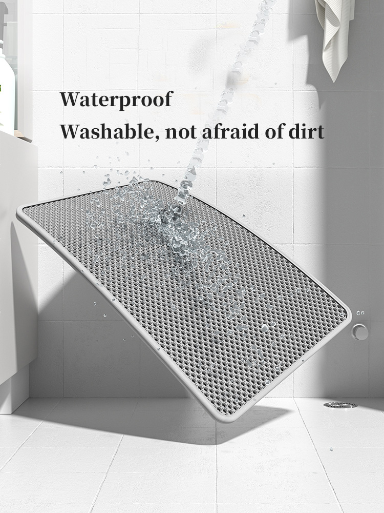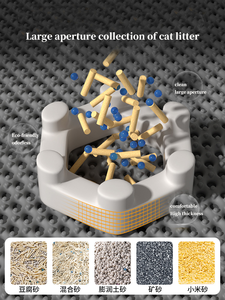 Selected high-density sponge material, soft and skin friendly without hurting feet, strong water absorption and dust locking ability, can firmly absorb cat litter and urine residue brought by pets, avoiding scattering and difficult cleaning on the ground;